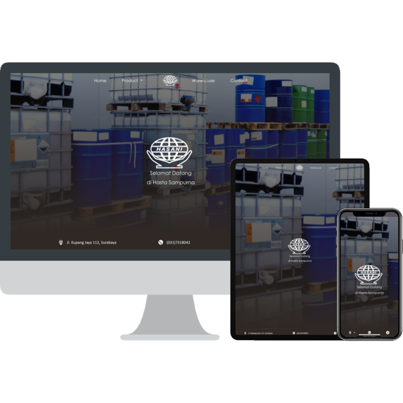 Hastasampurna memiliki produk bahan kimia, jasa generator set oleh sebab itu, website company profile menggunakan tampilan warna sedikit gelap dan berwarna biru untuk menghasilkan nuansa professional dalam bahan kimia.